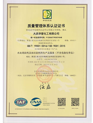 大慶華營化工有限公司成立于2006年7月10日,注冊資金3300萬元,公司類型為有限責(zé)任公司。位于大慶高新技術(shù)產(chǎn)業(yè)開發(fā)區(qū)宏偉園區(qū),是一家集油田助劑產(chǎn)品的研發(fā)、生產(chǎn)、銷售和技術(shù)服務(wù)為一體的現(xiàn)代化高新技術(shù)企業(yè)。公司注重科技創(chuàng)新,公司擁有18項自主知識產(chǎn)權(quán)。企業(yè)承擔(dān)過國家火炬計劃重點(diǎn)項目、國家科技型中小企業(yè)創(chuàng)新項目等,2011年被科技部火炬高新技術(shù)產(chǎn)業(yè)開發(fā)中心評為國家火炬計劃重點(diǎn)高新技術(shù)企業(yè)。公司十余種產(chǎn)品獲得中國石油天然氣集團(tuán)公司產(chǎn)品質(zhì)量認(rèn)可證書,其中粘穩(wěn)型驅(qū)油劑獲國家火炬計劃重點(diǎn)項目證書。公司憑借多年對大慶油田及周邊油田地質(zhì)情況的研究,可針對各油田地層特點(diǎn)調(diào)整產(chǎn)品的配方,更好地發(fā)揮各類油田助劑的性能。